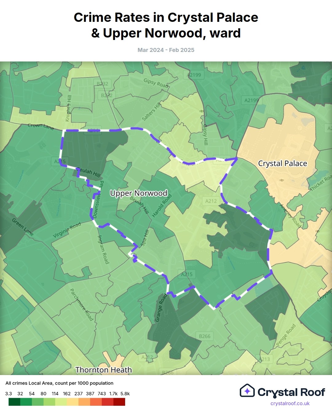 Crystal Palace & Upper Norwood, (ward) includes areas with the following crime ratings (see map):