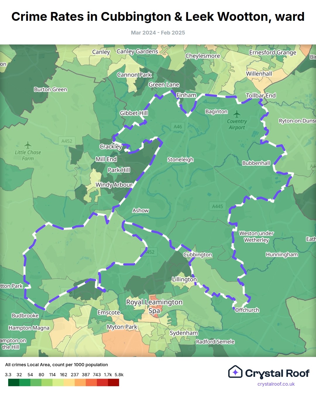 Cubbington & Leek Wootton, (ward) includes areas with the following crime ratings (see map):