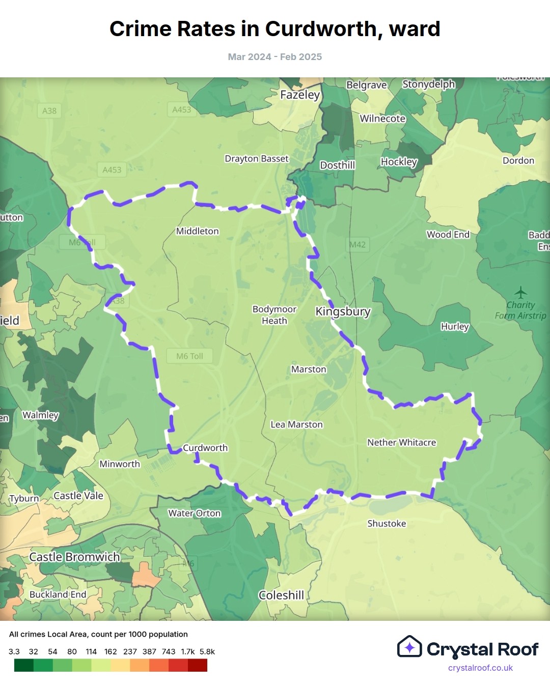 Curdworth, (ward) includes areas with the following crime ratings (see map):