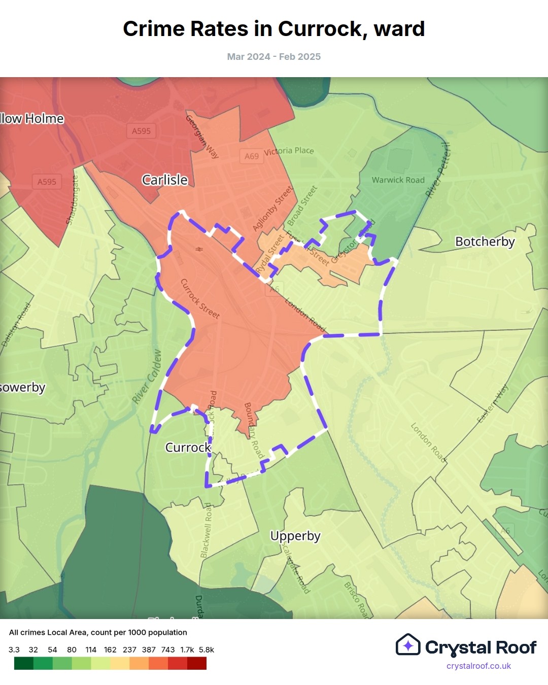 Currock, (ward) includes areas with the following crime ratings (see map):