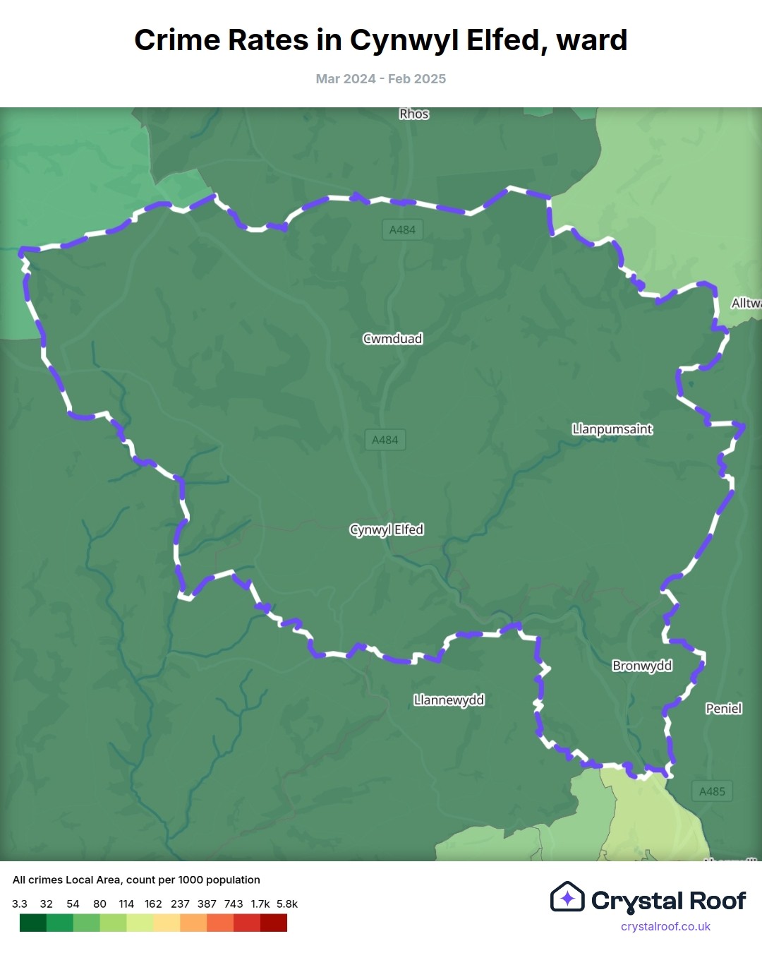 Cynwyl Elfed, (ward) includes areas with the following crime ratings (see map):
