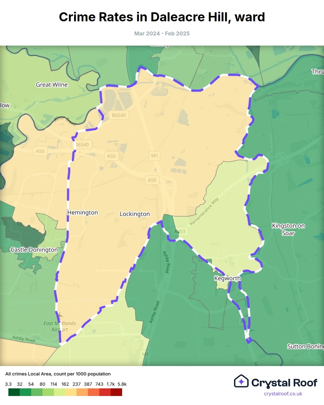 Daleacre Hill, (ward) includes areas with the following crime ratings (see map):