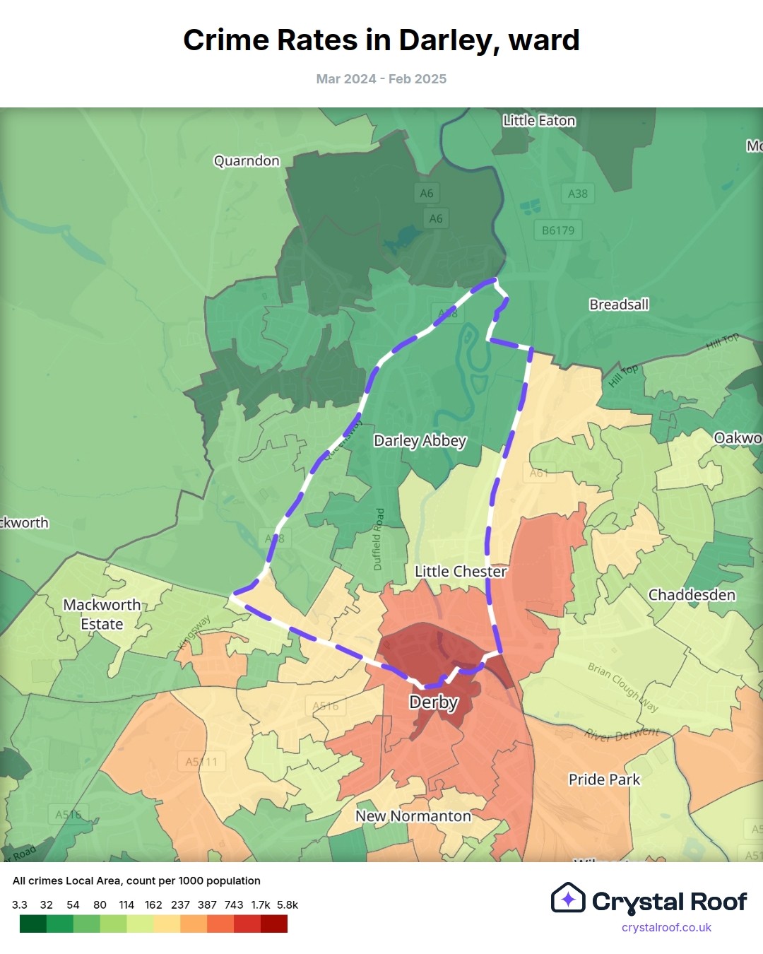 Darley, (ward) includes areas with the following crime ratings (see map):