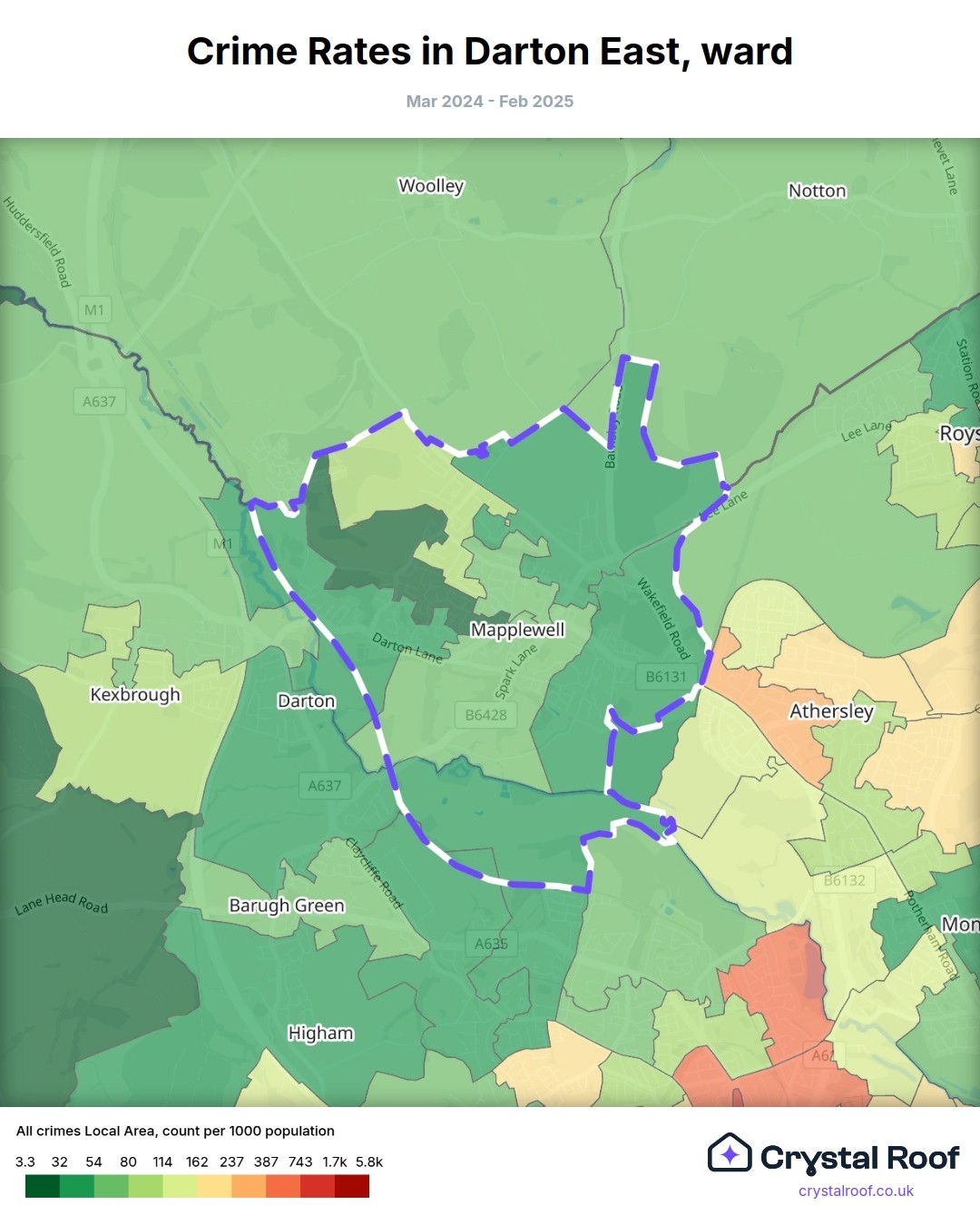Darton East, (ward) includes areas with the following crime ratings (see map):