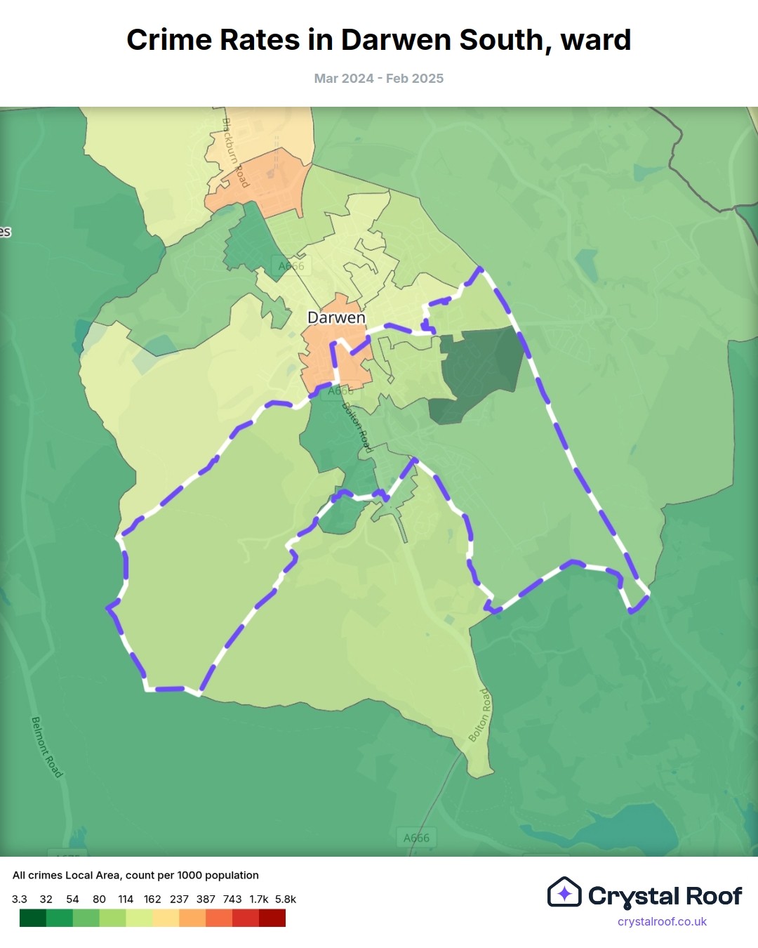 Darwen South, (ward) includes areas with the following crime ratings (see map):