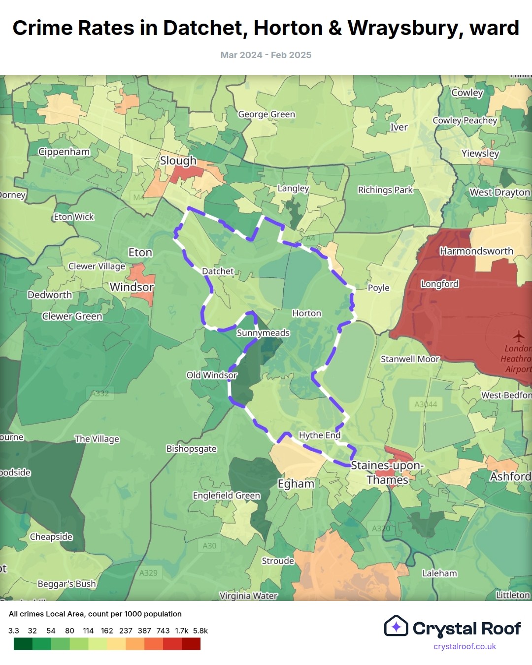 Datchet, Horton & Wraysbury, (ward) includes areas with the following crime ratings (see map):