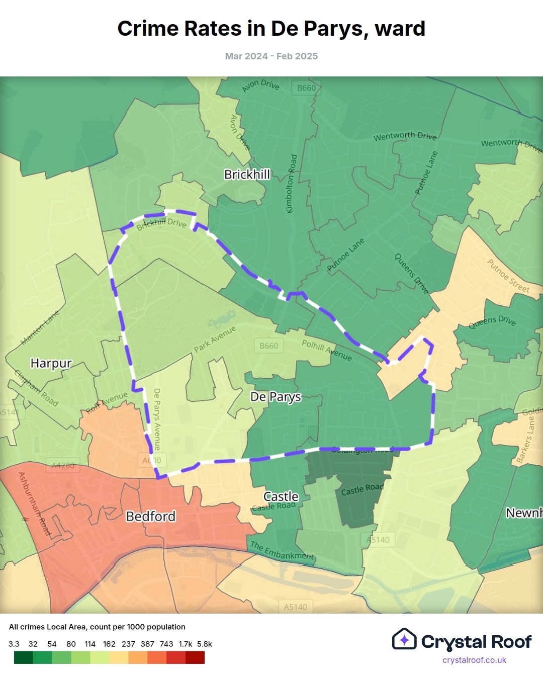 De Parys, (ward) includes areas with the following crime ratings (see map):