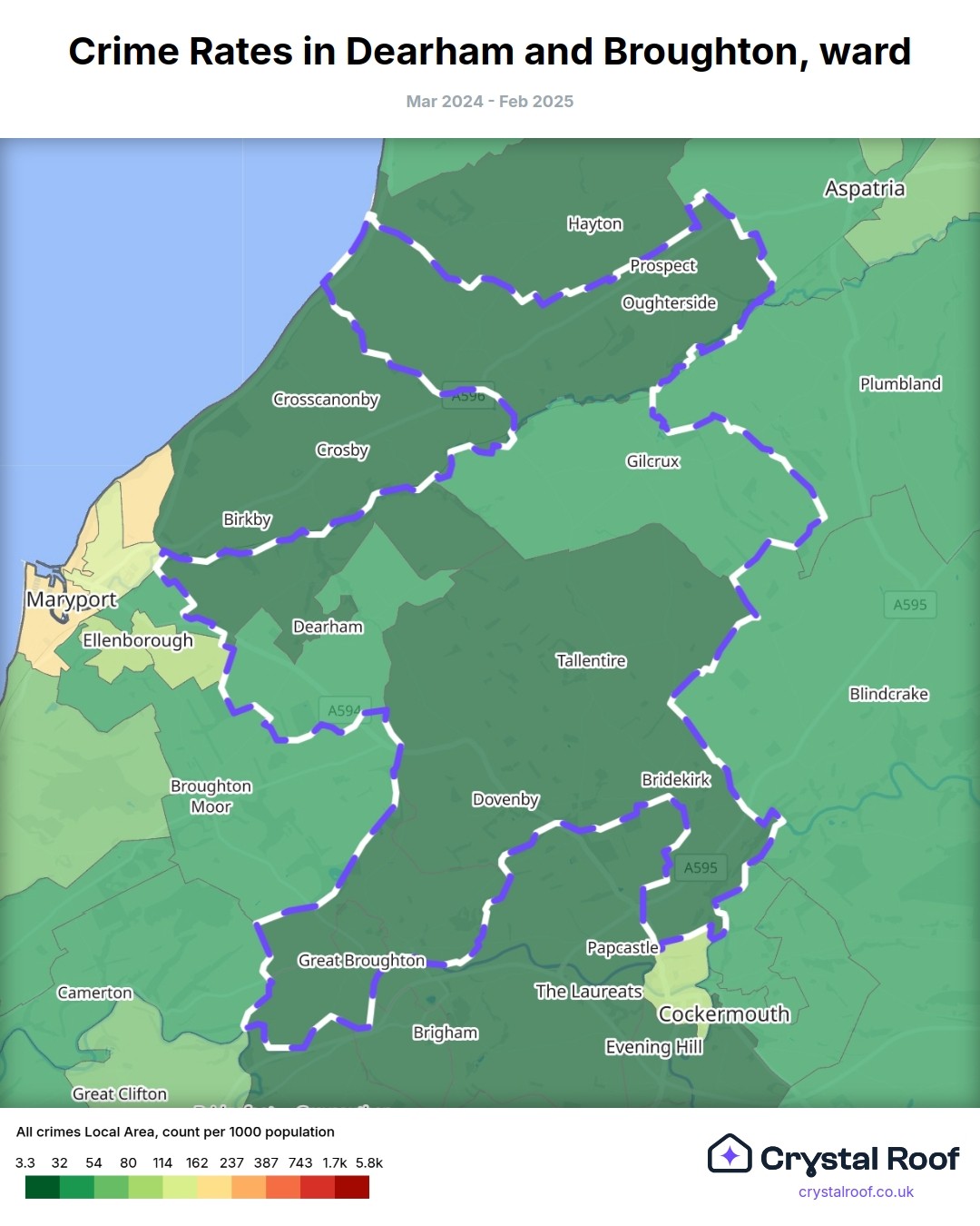 Dearham and Broughton, (ward) includes areas with the following crime ratings (see map):