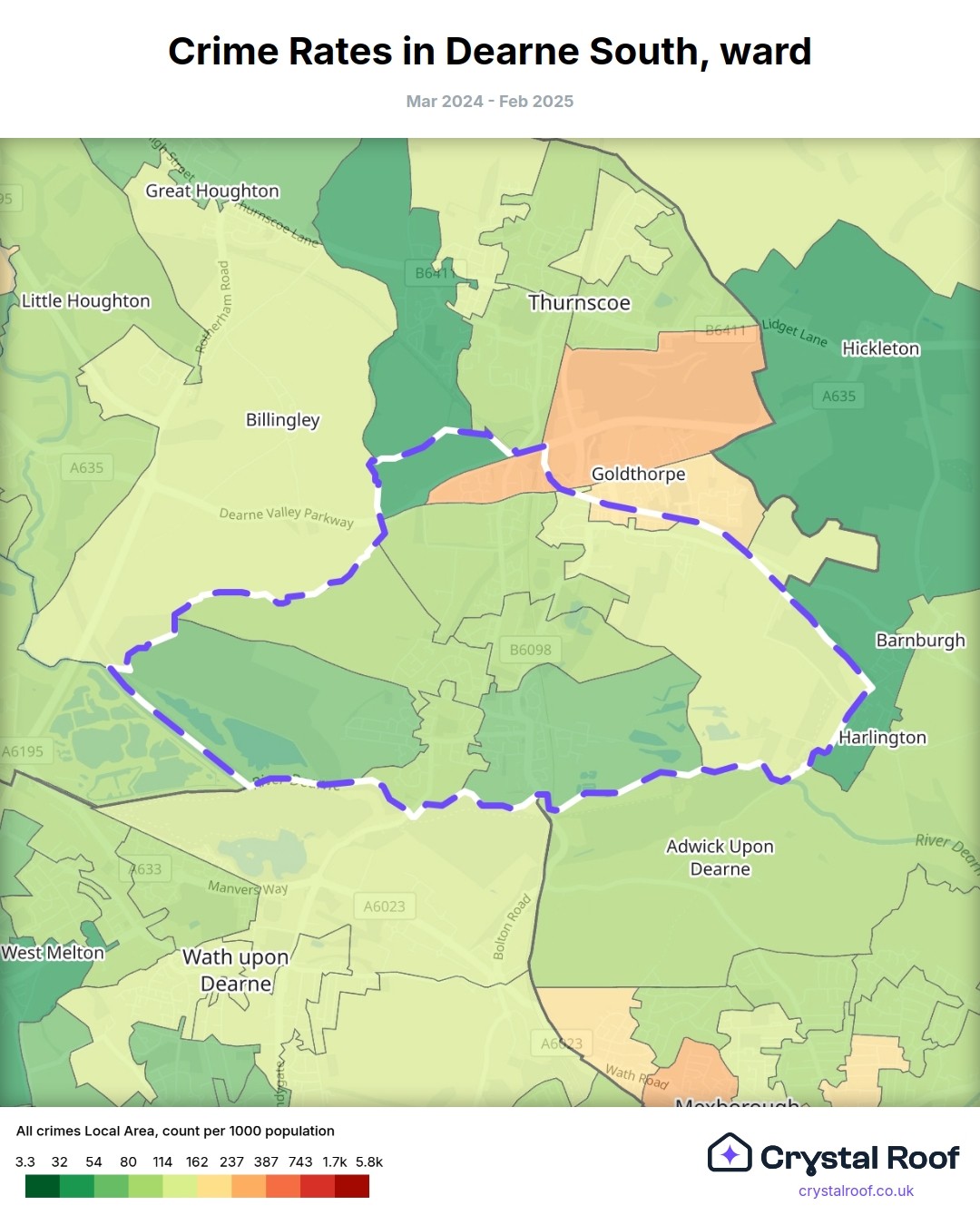Dearne South, (ward) includes areas with the following crime ratings (see map):