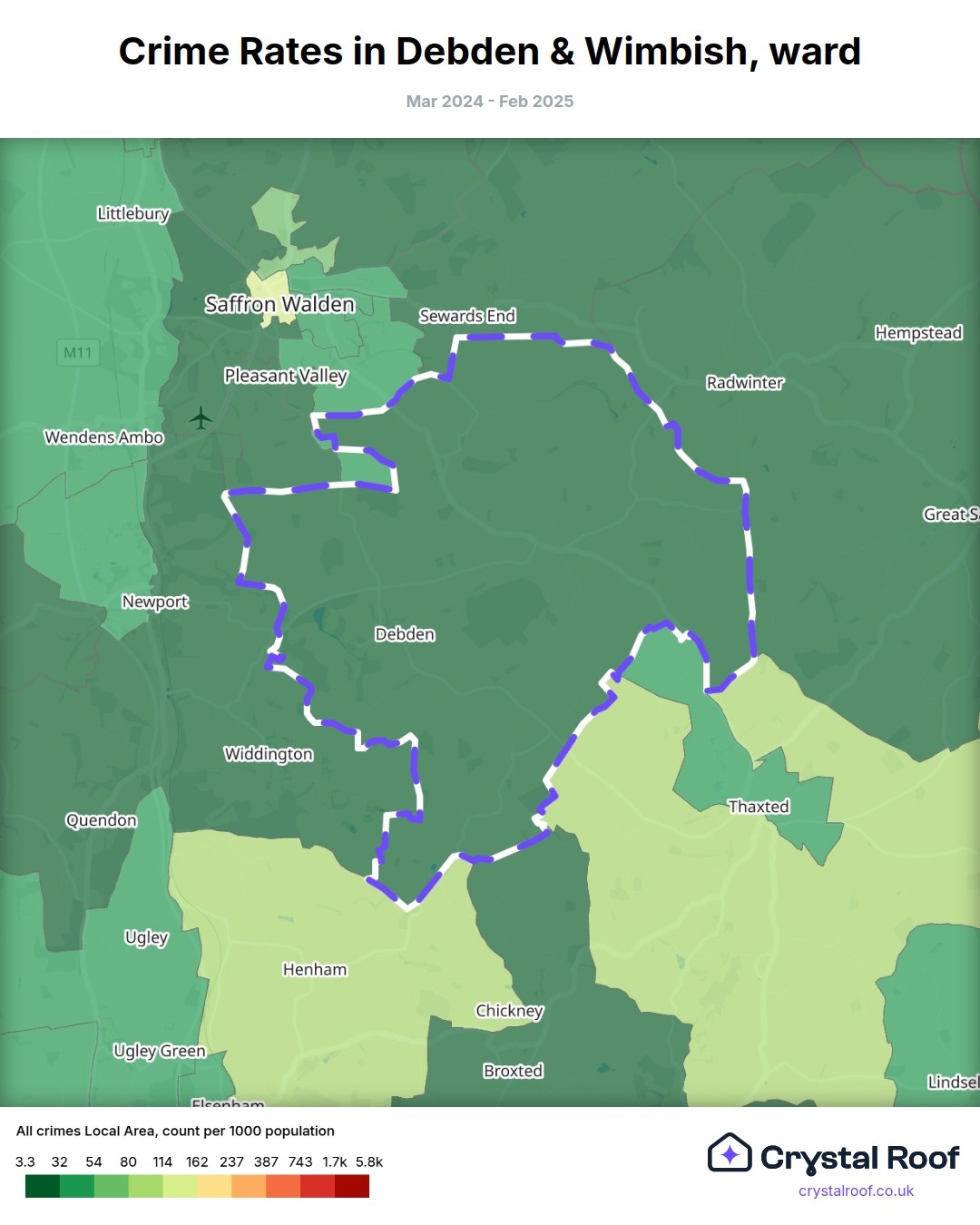 Debden & Wimbish, (ward) includes areas with the following crime ratings (see map):