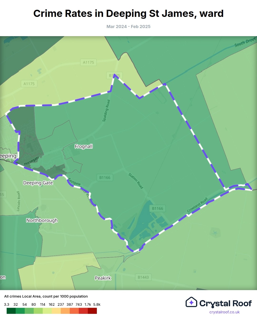Deeping St James, (ward) includes areas with the following crime ratings (see map):