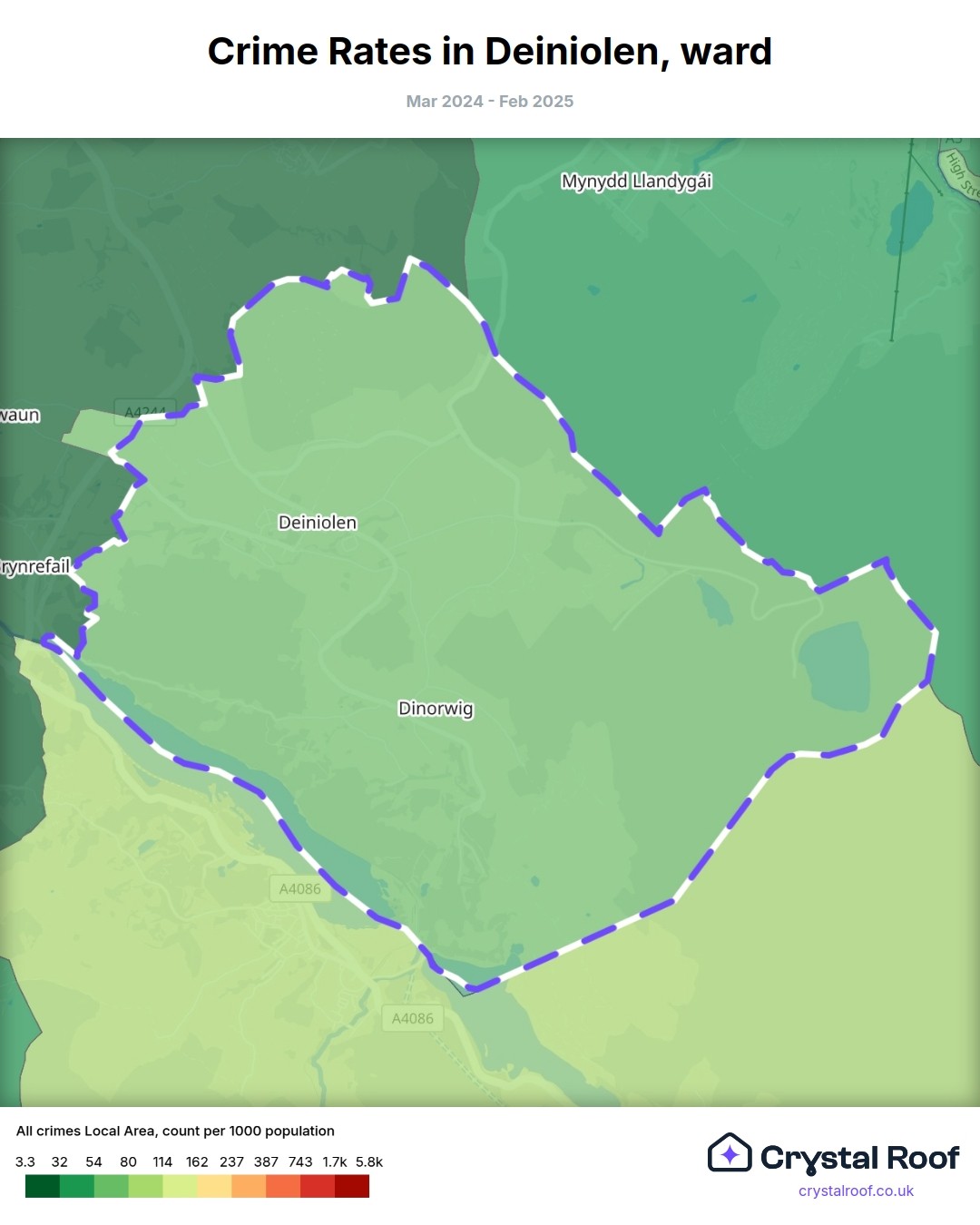 Deiniolen, (ward) includes areas with the following crime ratings (see map):