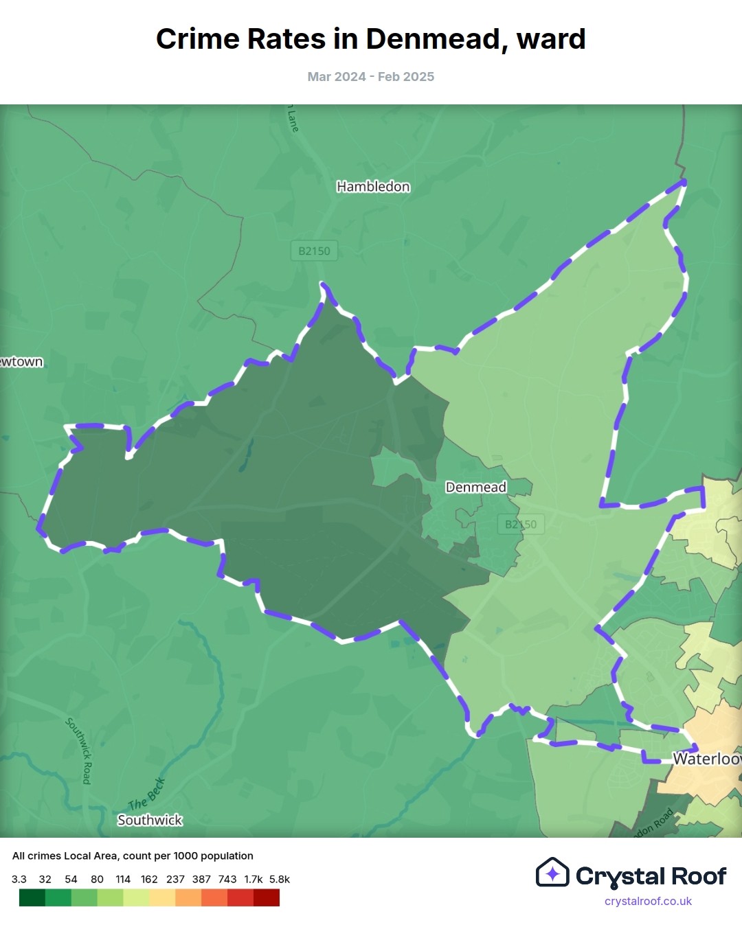 Denmead, (ward) includes areas with the following crime ratings (see map):