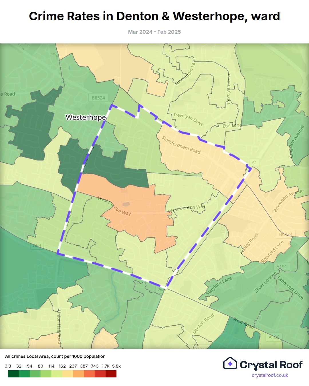 Denton & Westerhope, (ward) includes areas with the following crime ratings (see map):