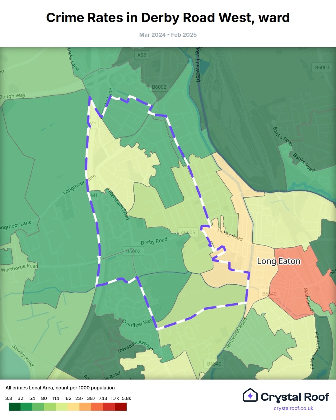 Derby Road West, (ward) includes areas with the following crime ratings (see map):