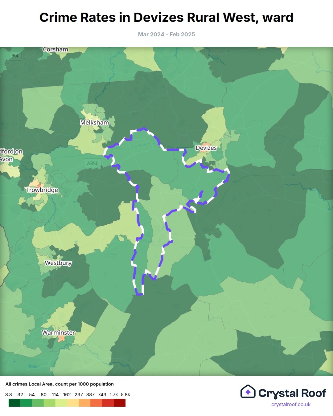 Devizes Rural West, (ward) includes areas with the following crime ratings (see map):