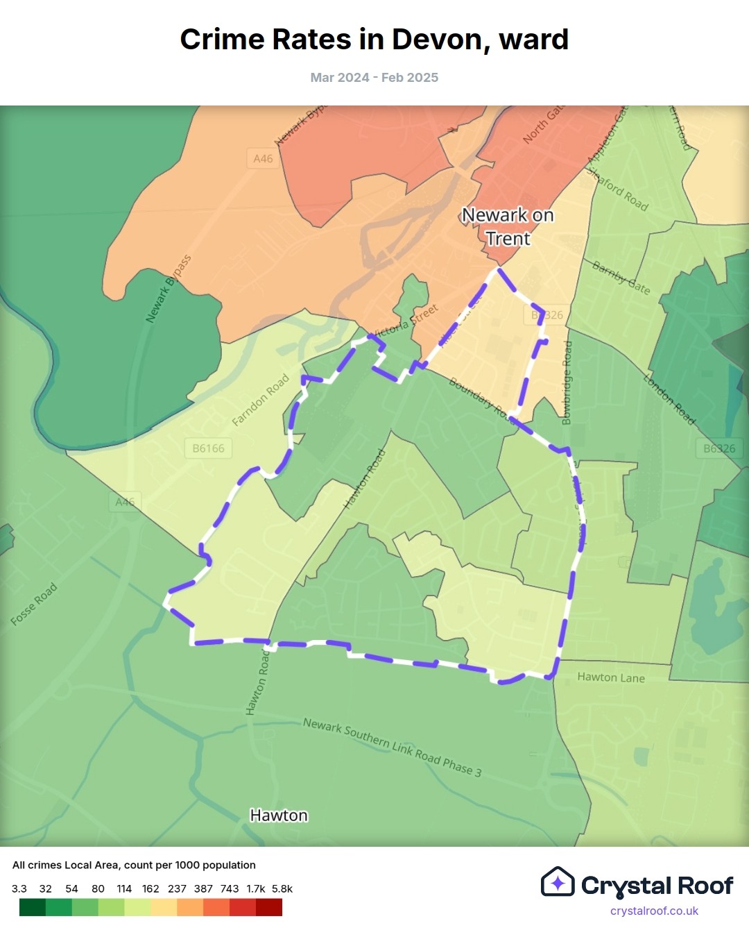 Devon, (ward) includes areas with the following crime ratings (see map):