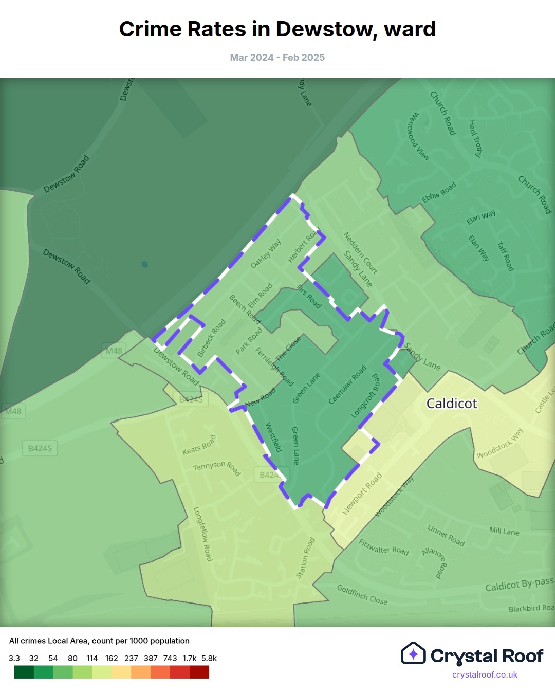 Dewstow, (ward) includes areas with the following crime ratings (see map):