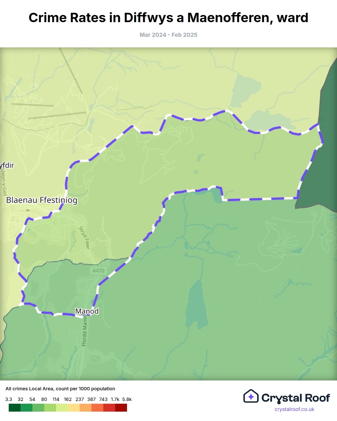 Diffwys a Maenofferen, (ward) includes areas with the following crime ratings (see map):