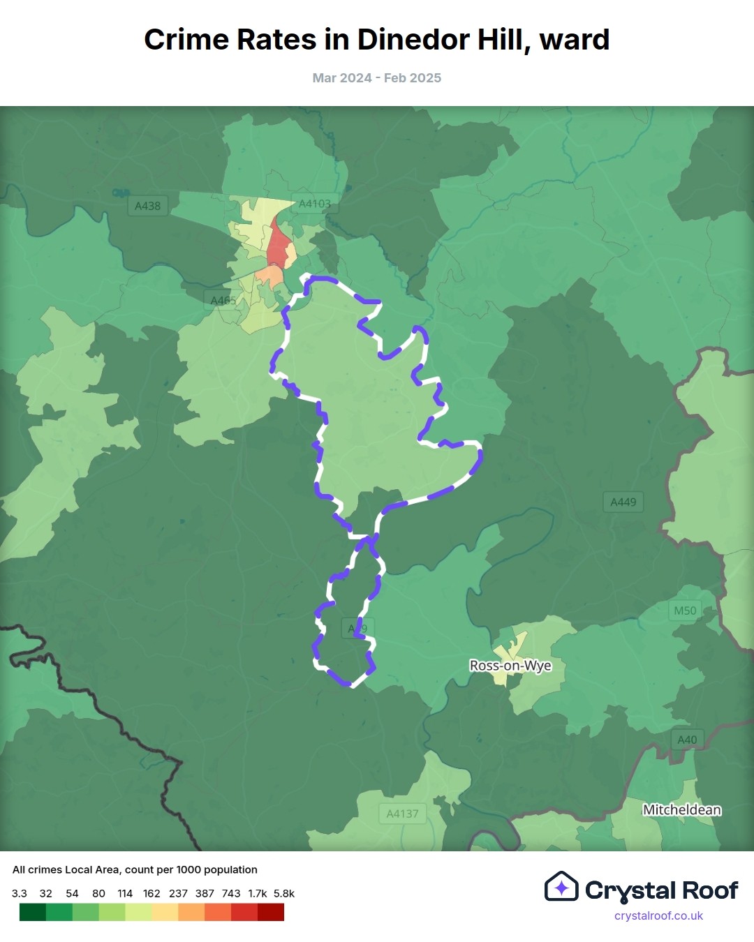 Dinedor Hill, (ward) includes areas with the following crime ratings (see map):