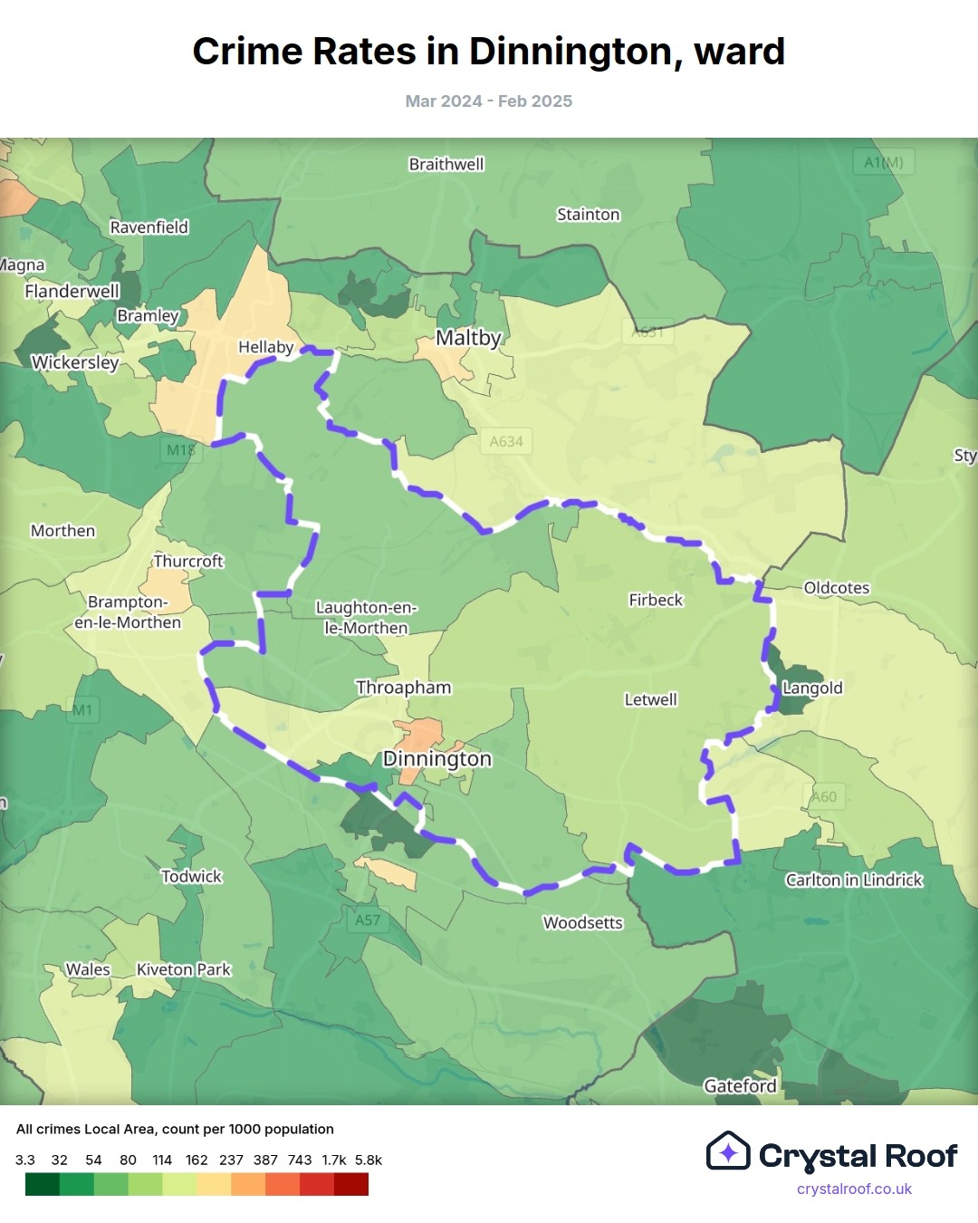 Dinnington, (ward) includes areas with the following crime ratings (see map):