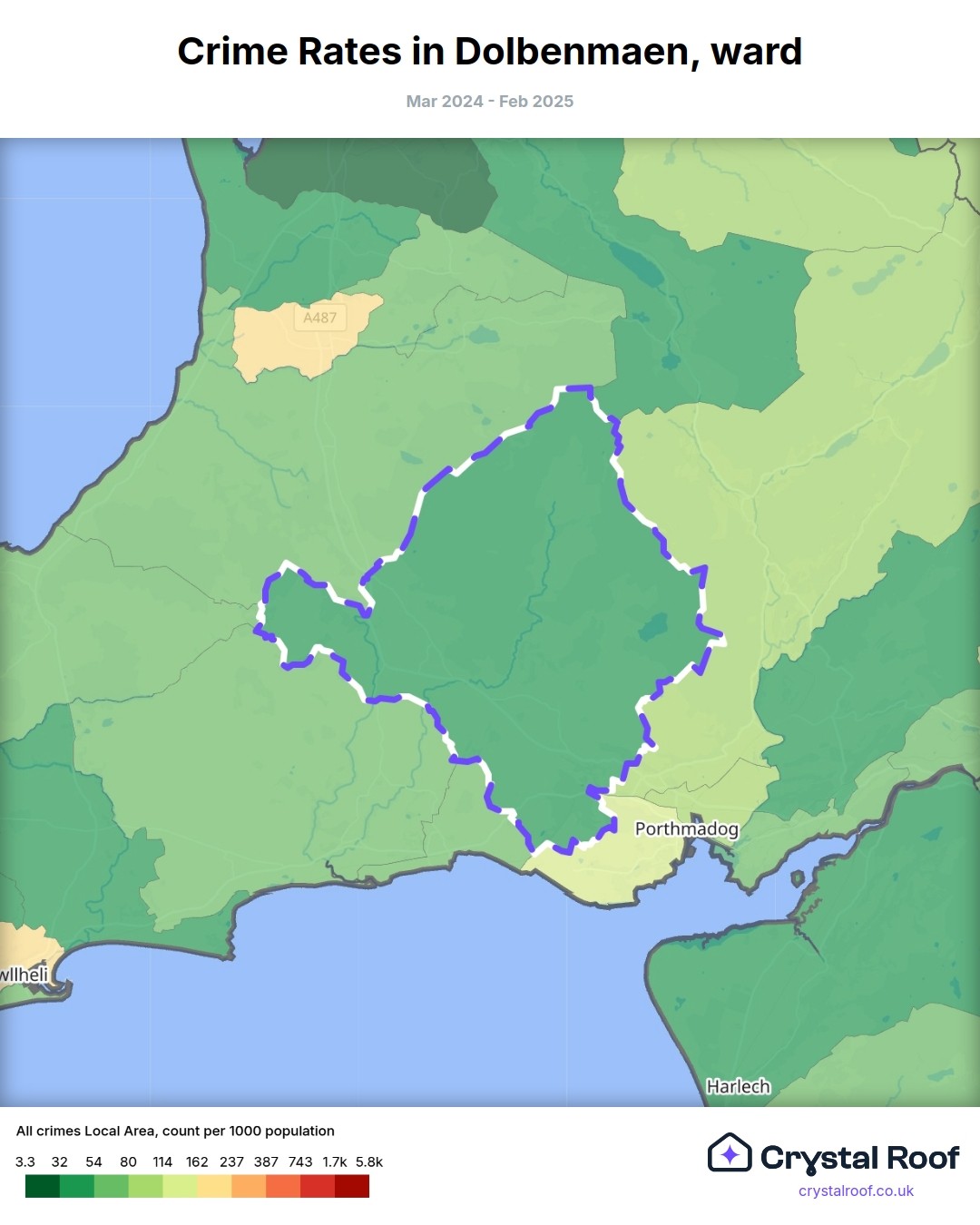 Dolbenmaen, (ward) includes areas with the following crime ratings (see map):
