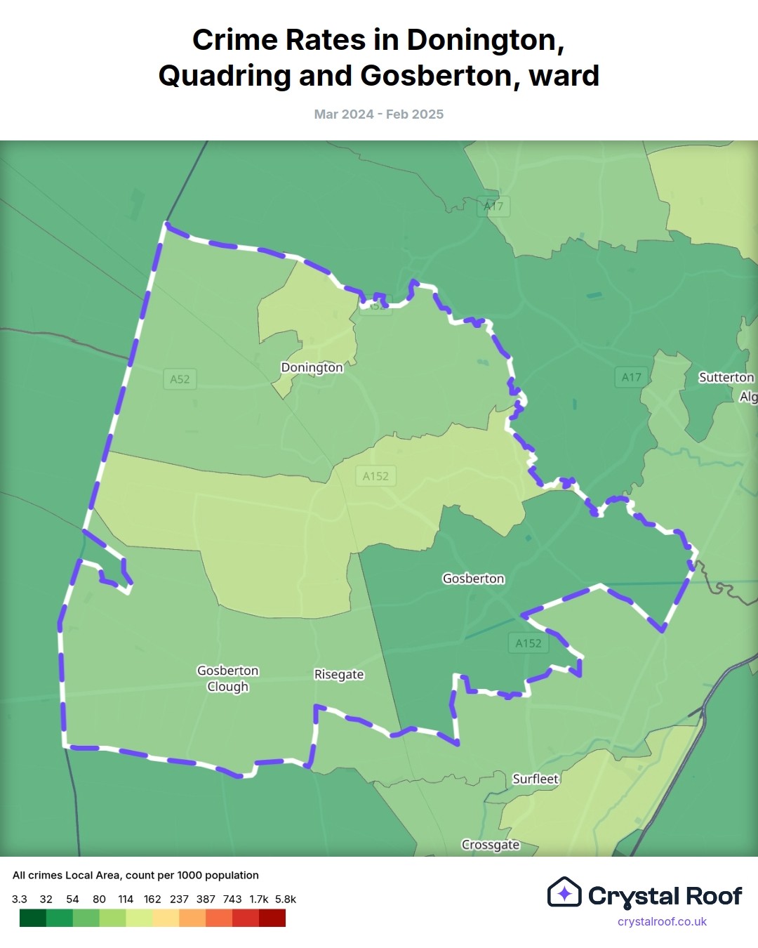 Donington, Quadring and Gosberton, (ward) includes areas with the following crime ratings (see map):