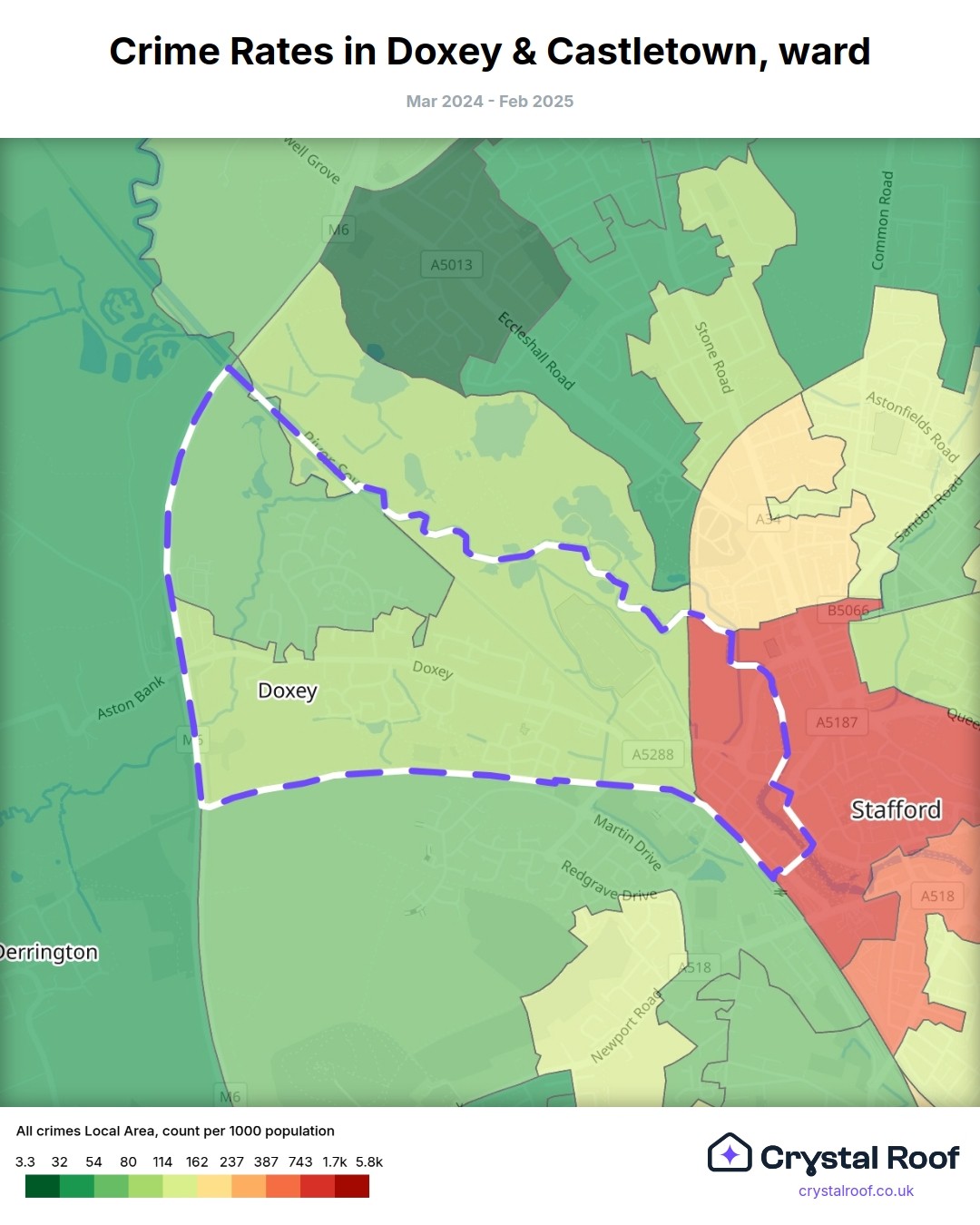 Doxey & Castletown, (ward) includes areas with the following crime ratings (see map):