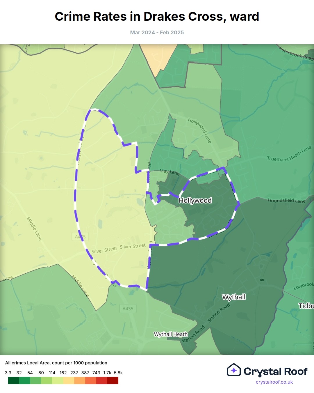 Drakes Cross, (ward) includes areas with the following crime ratings (see map):