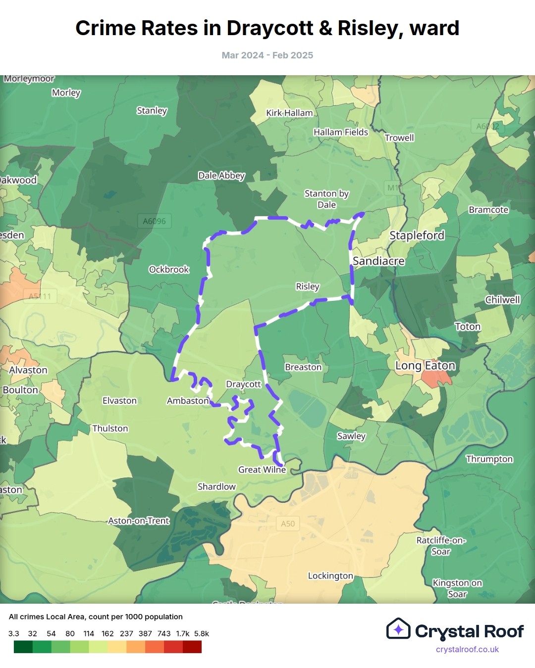 Draycott & Risley, (ward) includes areas with the following crime ratings (see map):