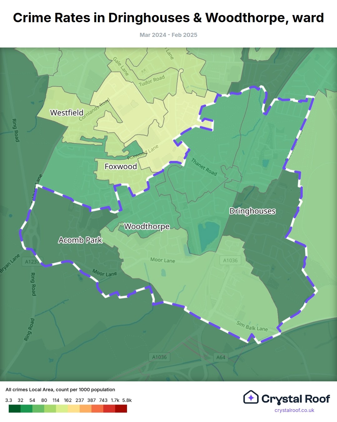 Dringhouses & Woodthorpe, (ward) includes areas with the following crime ratings (see map):