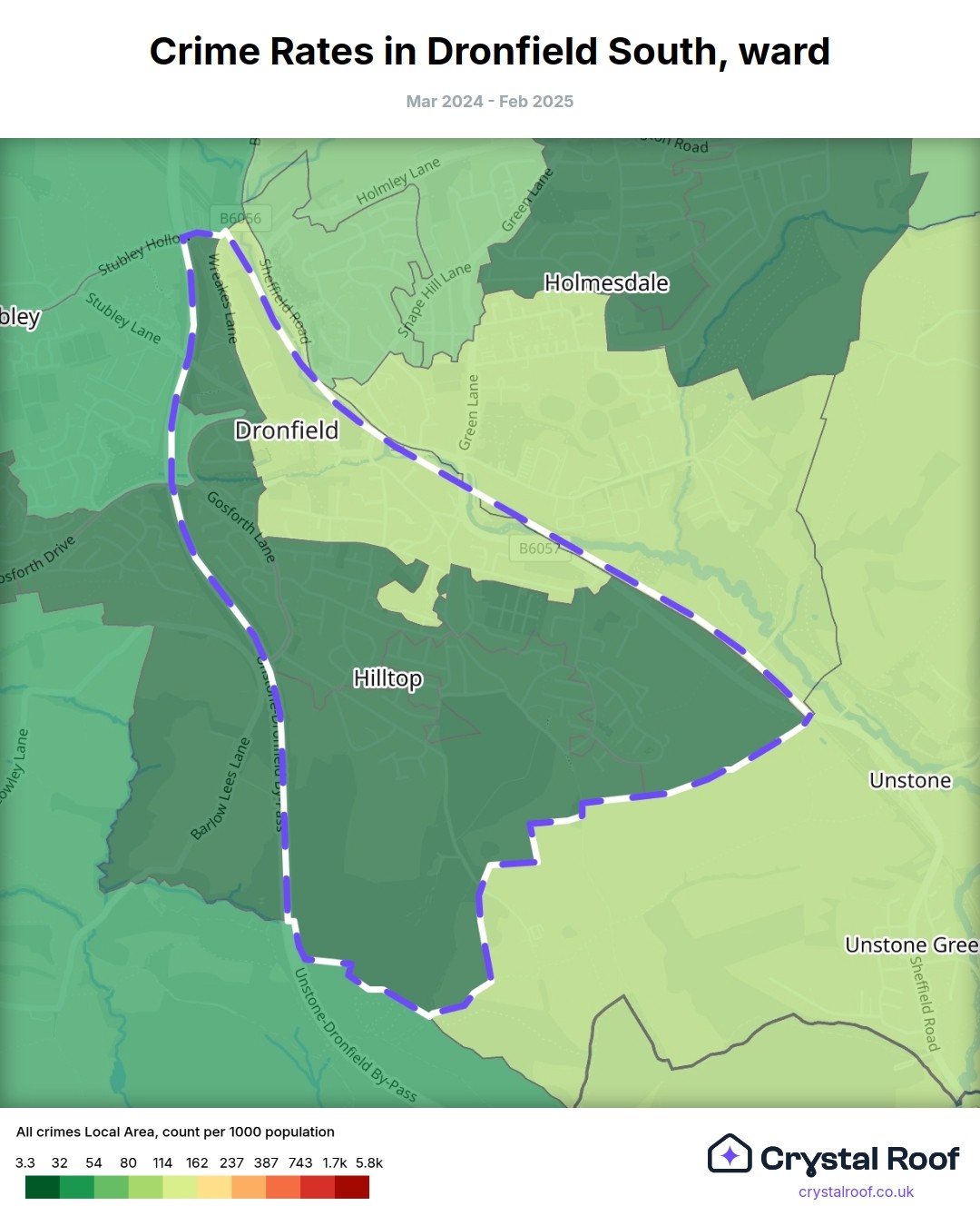 Dronfield South, (ward) includes areas with the following crime ratings (see map):