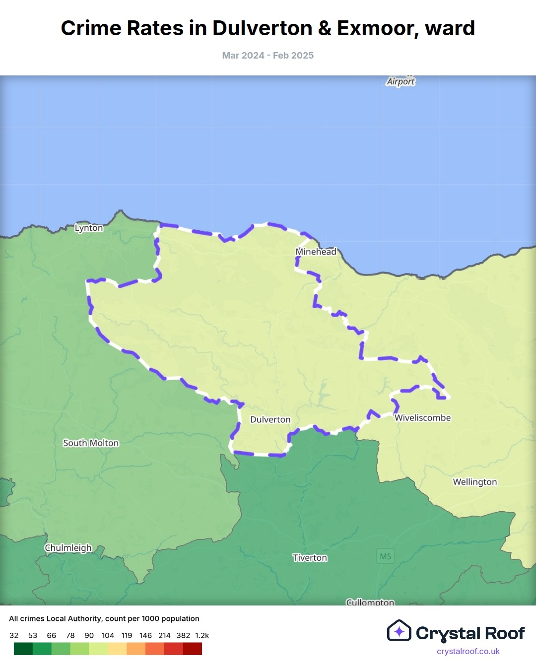 Dulverton & Exmoor, (ward) includes areas with the following crime ratings (see map):