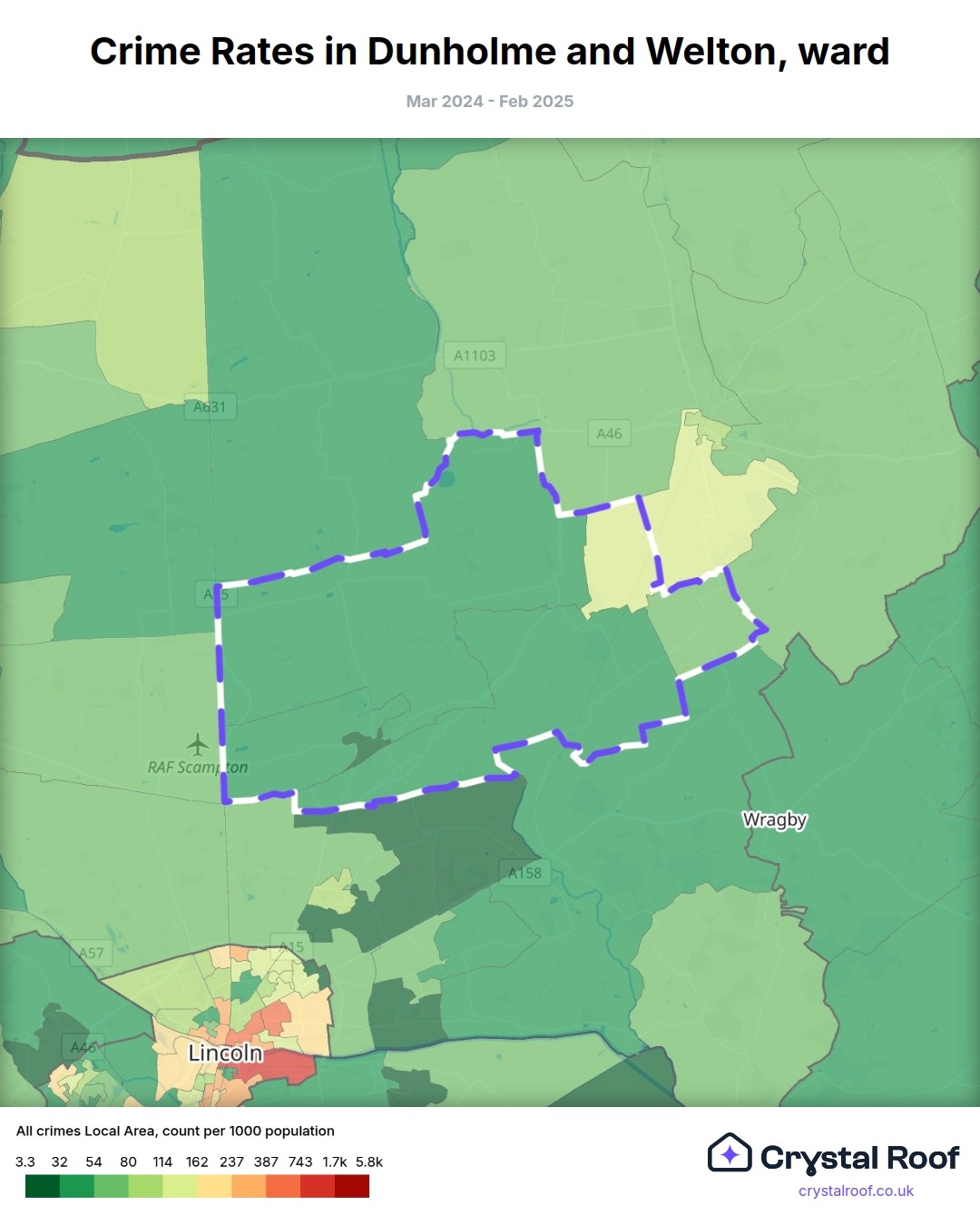 Dunholme and Welton, (ward) includes areas with the following crime ratings (see map):