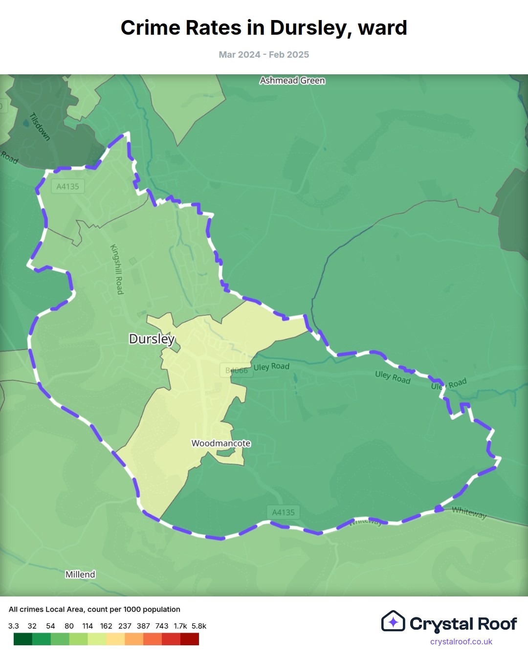 Dursley, (ward) includes areas with the following crime ratings (see map):
