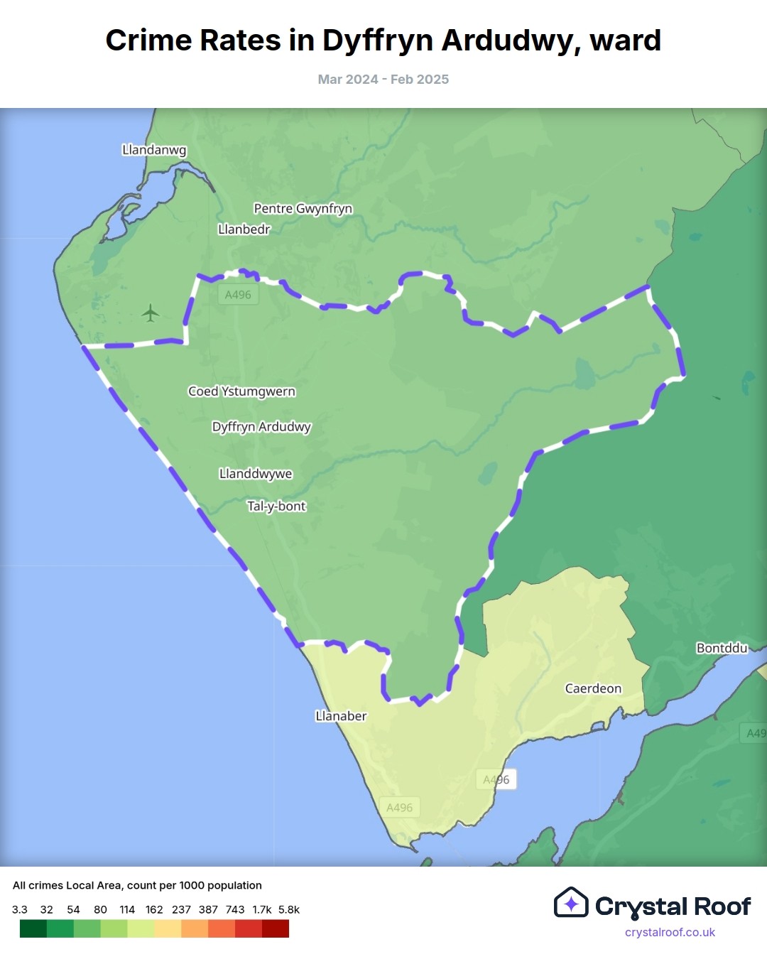 Dyffryn Ardudwy, (ward) includes areas with the following crime ratings (see map):