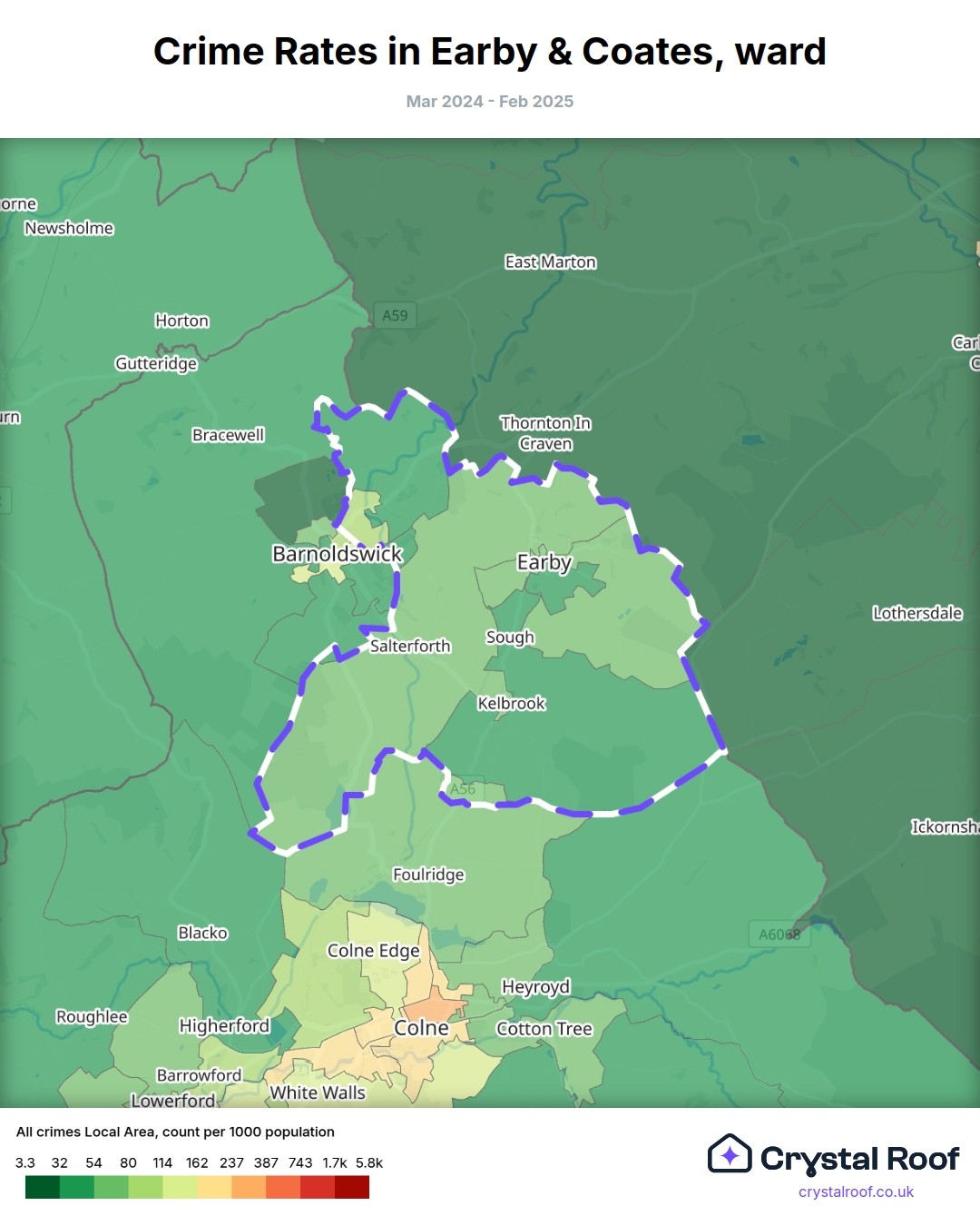 Earby & Coates, (ward) includes areas with the following crime ratings (see map):