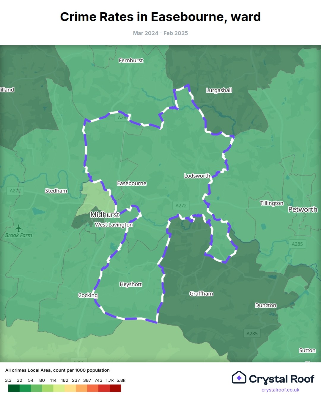 Easebourne, (ward) includes areas with the following crime ratings (see map):