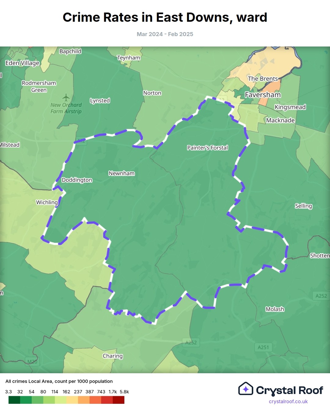 East Downs, (ward) includes areas with the following crime ratings (see map):