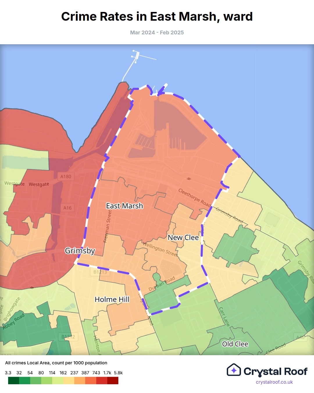 East Marsh, (ward) includes areas with the following crime ratings (see map):