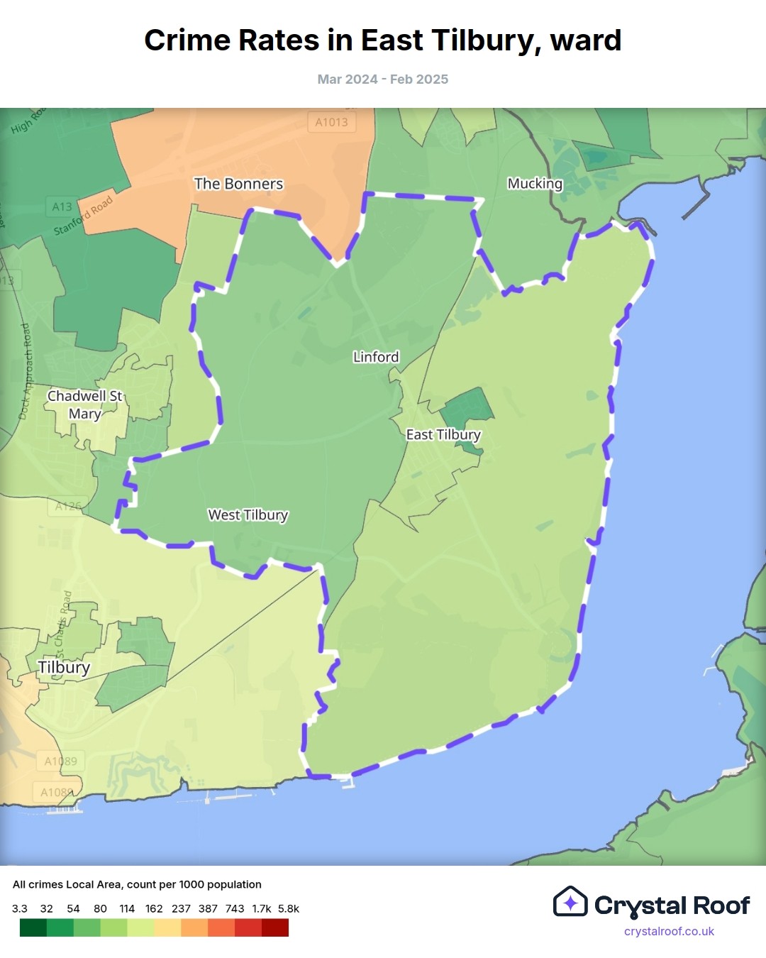 East Tilbury, (ward) includes areas with the following crime ratings (see map):
