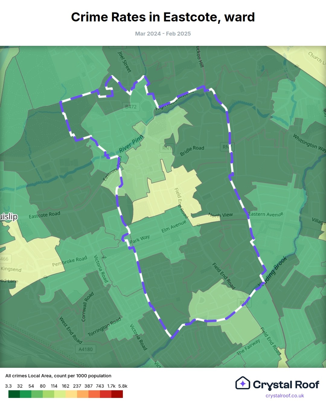 Eastcote, (ward) includes areas with the following crime ratings (see map):