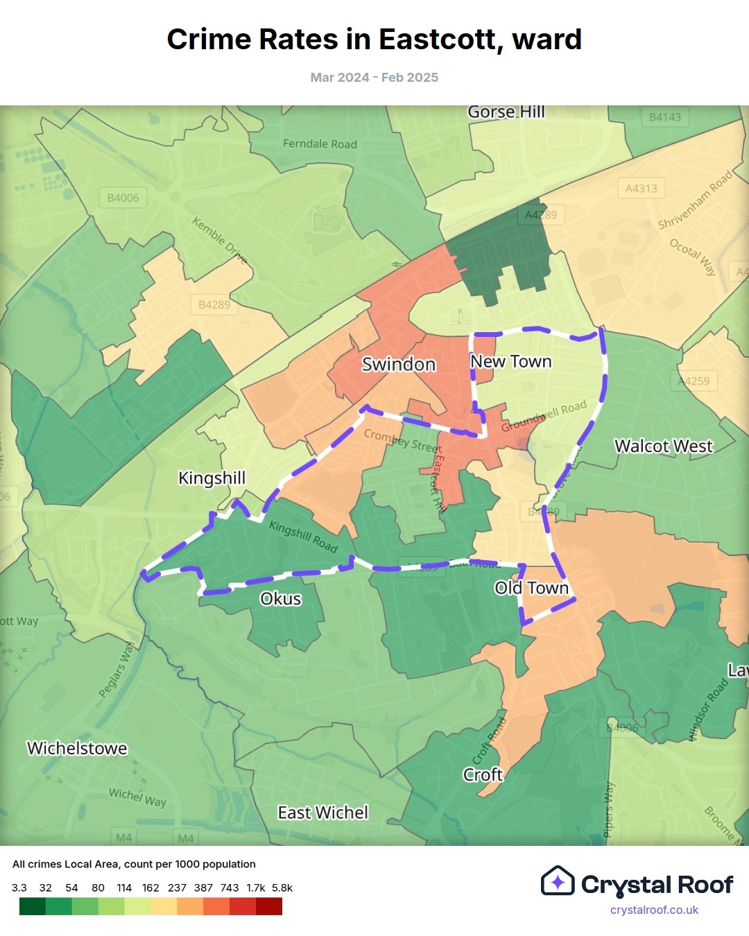 Eastcott, (ward) includes areas with the following crime ratings (see map):