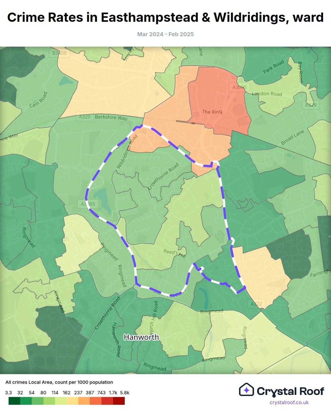 Easthampstead & Wildridings, (ward) includes areas with the following crime ratings (see map):