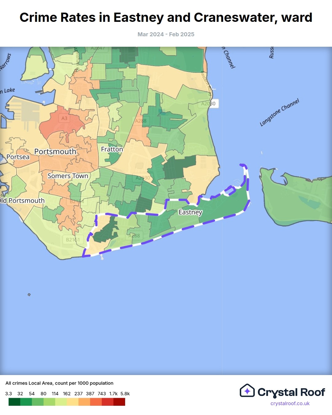 Eastney and Craneswater, (ward) includes areas with the following crime ratings (see map):