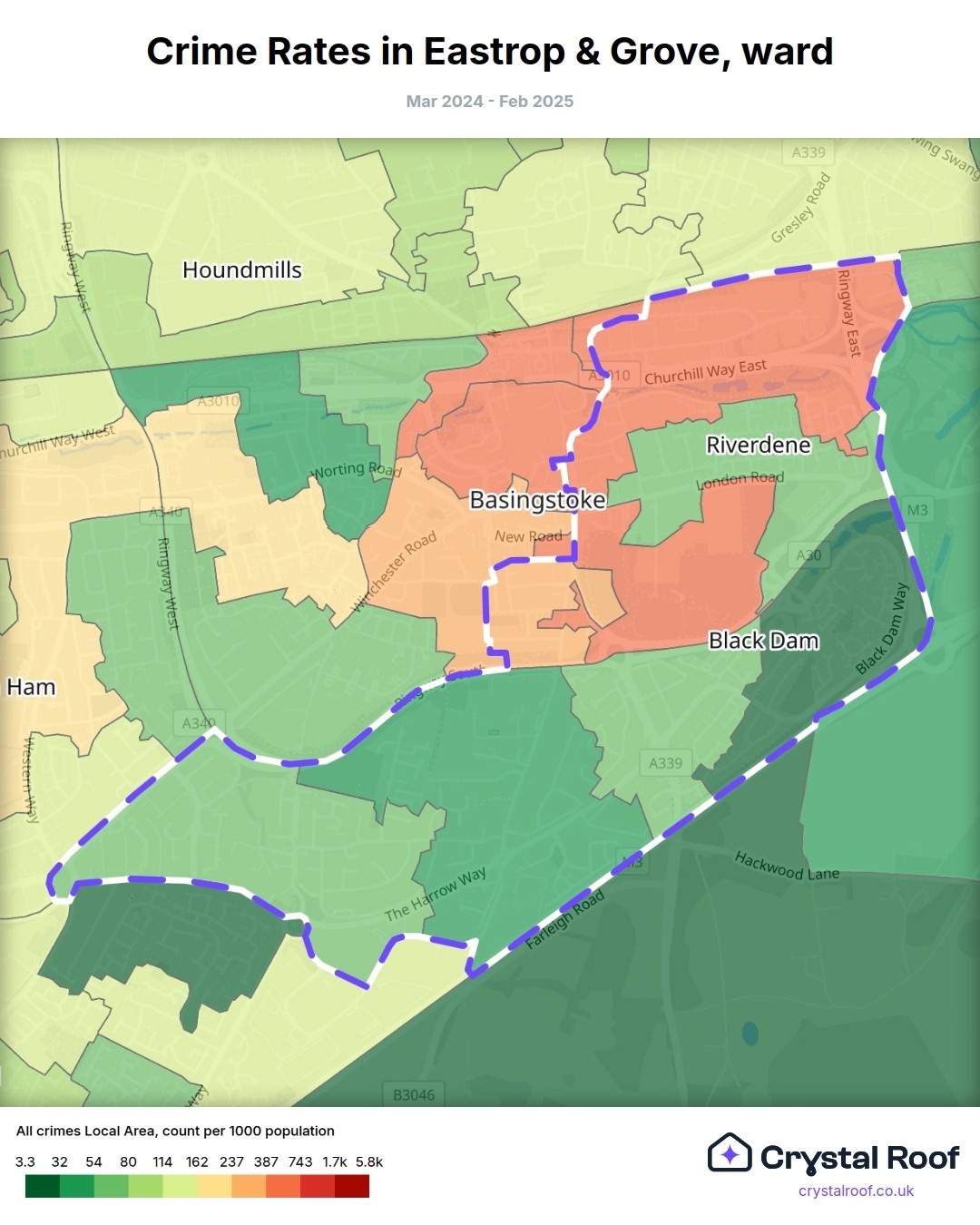 Eastrop & Grove, (ward) includes areas with the following crime ratings (see map):