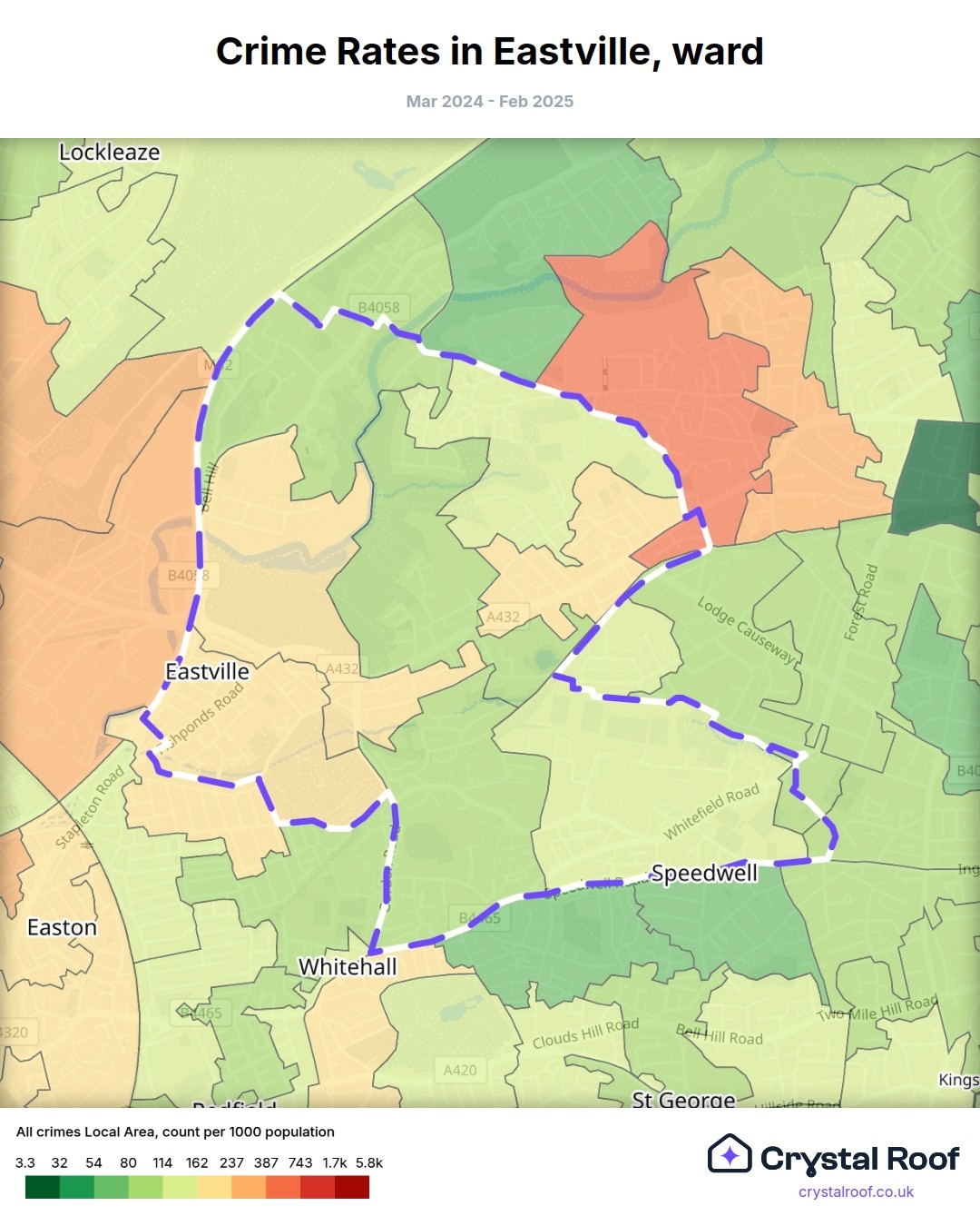 Eastville, (ward) includes areas with the following crime ratings (see map):