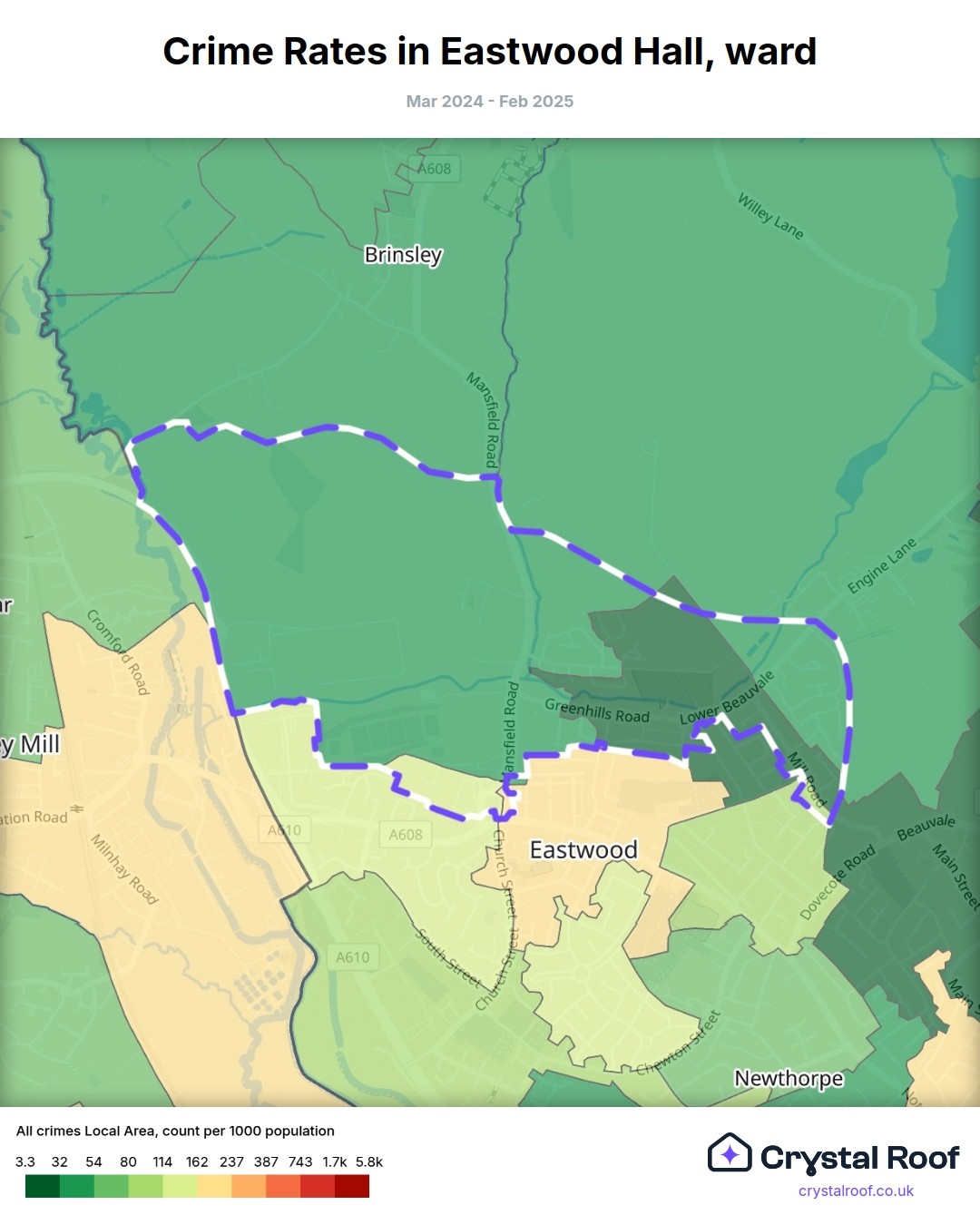 Eastwood Hall, (ward) includes areas with the following crime ratings (see map):