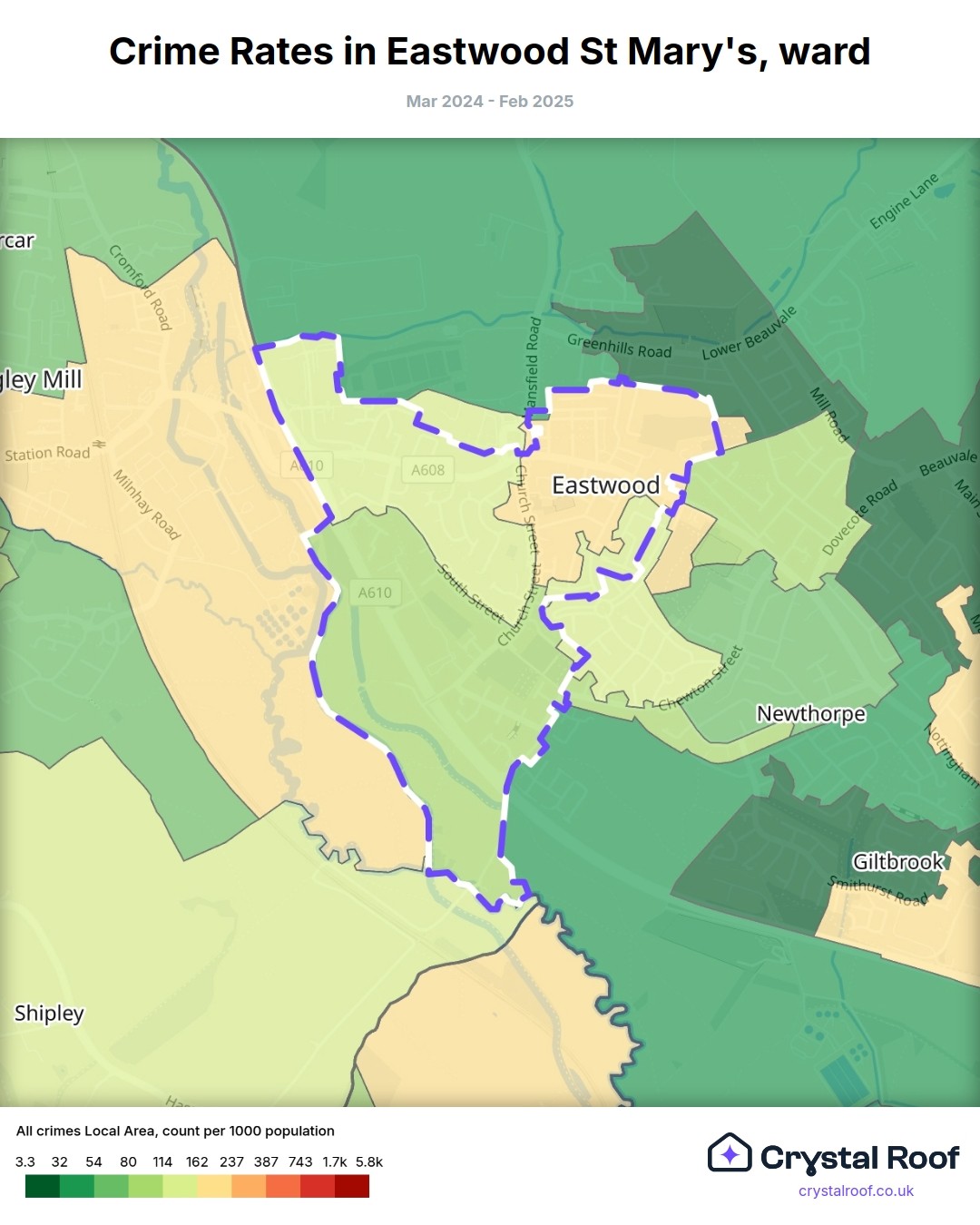 Eastwood St Mary's, (ward) includes areas with the following crime ratings (see map):