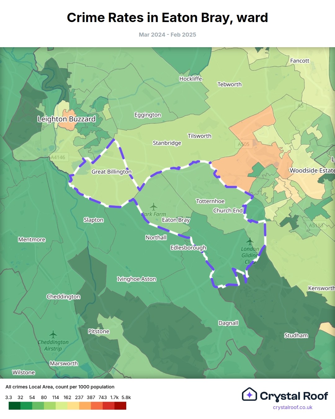 Eaton Bray, (ward) includes areas with the following crime ratings (see map):